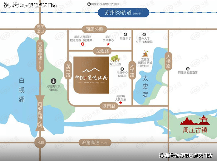 (S3 规划)项目北侧还有一条规划中的轻轨 S3 号线,东连上海 17 号线漕盈路站,西接苏州 4 号线同里站,途径淀山湖、锦溪、周庄,此线路一旦通车将极大地加速整个南部水乡旅游业的发展;轻轨的开通将会给南部水乡的生活方式带来质的飞跃,当然也会让您今后的出行变得非常便利。