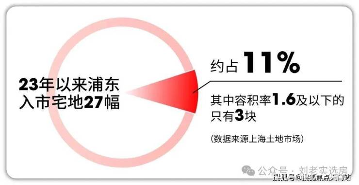 据上海土地官网显示,2023年至今整个浦东入市宅地27块, 其中容积率1.6及以下的只有3块,占比仅约11% ,其中之一就是金海雲墅。