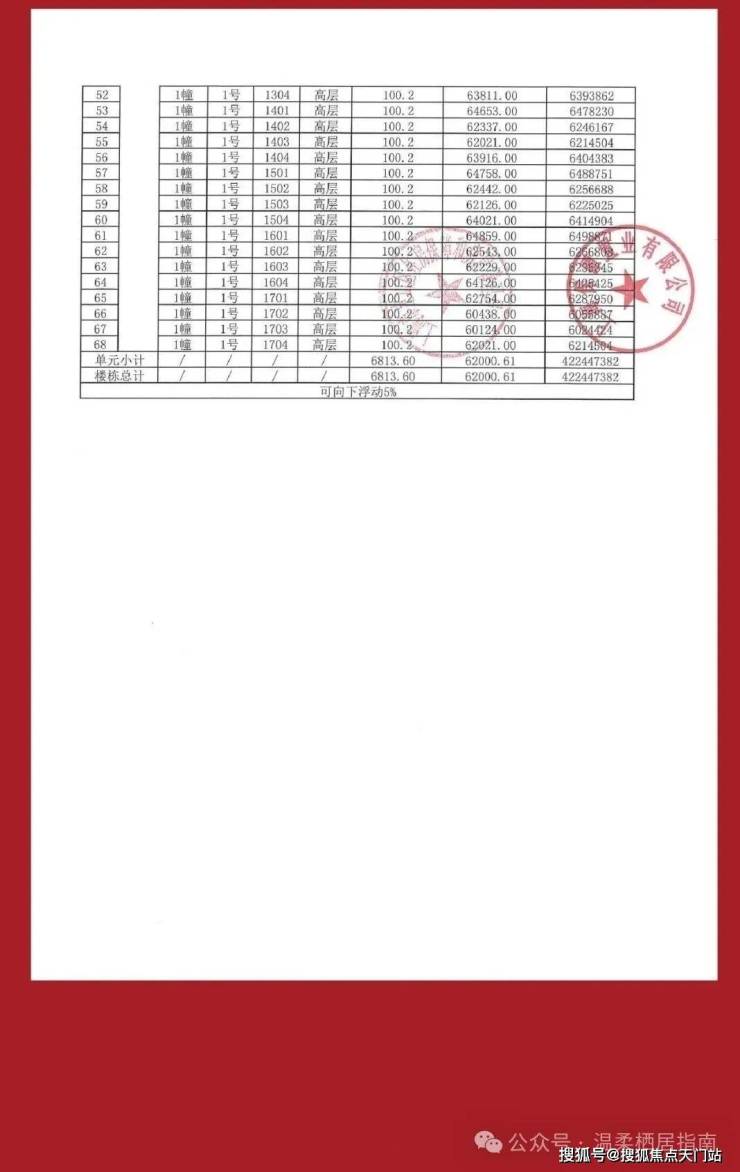 项目一房一价表▼