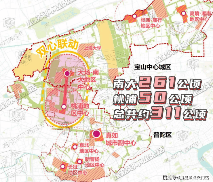 而南大与桃浦两大地区中心的“双心联动”,使得它们总共拥有约311万平方米的公园绿地,成为上海中环上最大的楔形绿地。