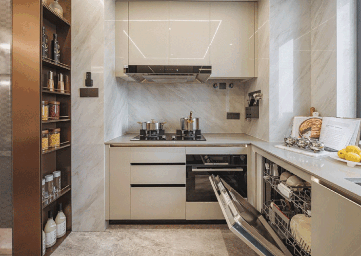 先说收纳,保利·海上瑧悦基于用户在玄关场景下的常用功能,在玄关处交付了约2.8米的超长玄关收纳柜,同时,针对餐厨收纳【保利·海上瑧悦】创新打造900mm立案的双面岛台收纳空间,将厨房收纳扩容30%,这在同级别产品中十分罕见。