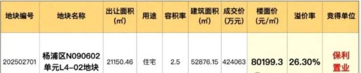 上海四批次土拍中,杨浦区一地块以 26.3%的高溢价率成交,楼面价高达80199元/㎡。而在此之前,北蔡楔形绿地新宅地出让,最终以高达 40%溢价率、7.14万/㎡楼板价成交,“面粉贵过面包” 已成常态,起售价几乎都会超过 10万+,内中环的置业门槛可谓一增再增。
