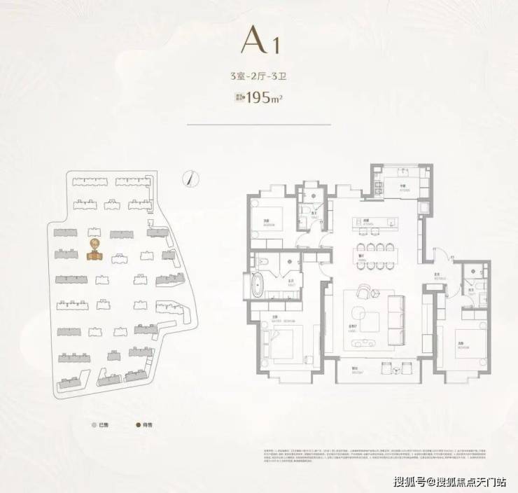 建面约195㎡大三房 | 藏品级尺度奢享 : 五年全市供应占比仅约0.04%,以接近200㎡的尺度只做三房,重新定义舒适度上限,是板块内绝无仅有的“资产型藏品”。