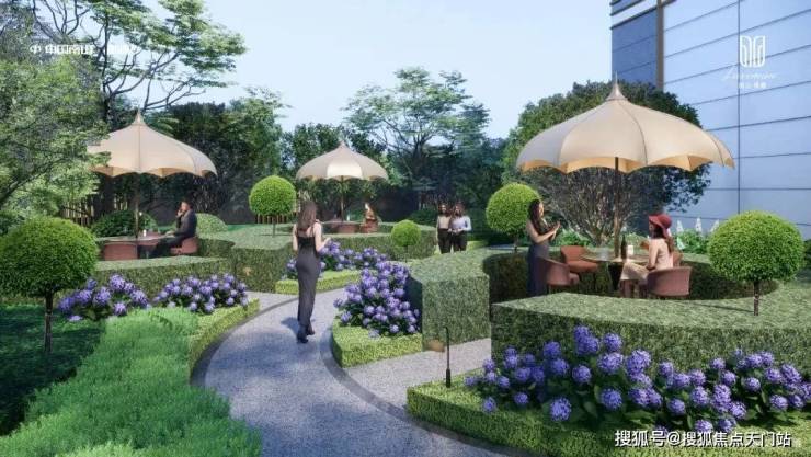 园林方面,南山璞缦汲取“当代景观之父”彼得沃克,线性公园及度假式酒店为灵感,匠作由“礼序归家轴+景观漫步轴”纵横交织的双轴景观动线。