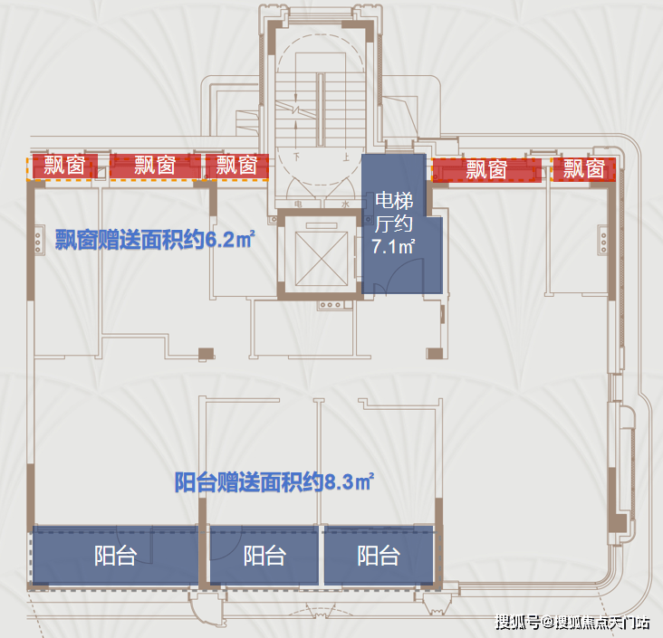 三阳台五飘窗 ,整体的赠送面积达到了约14.5㎡,相当于 赠送了一整间卧室