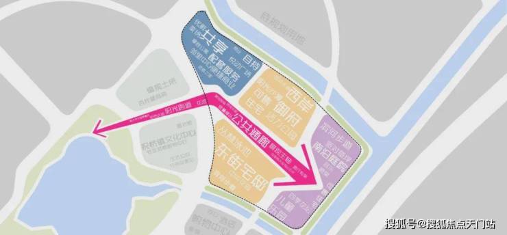 据悉社区由自持住宅、可售住宅、社区配套三大功能组合而成,北区为公区自持配套区,中区为住宅社区,南区为住宅社区及配套。
