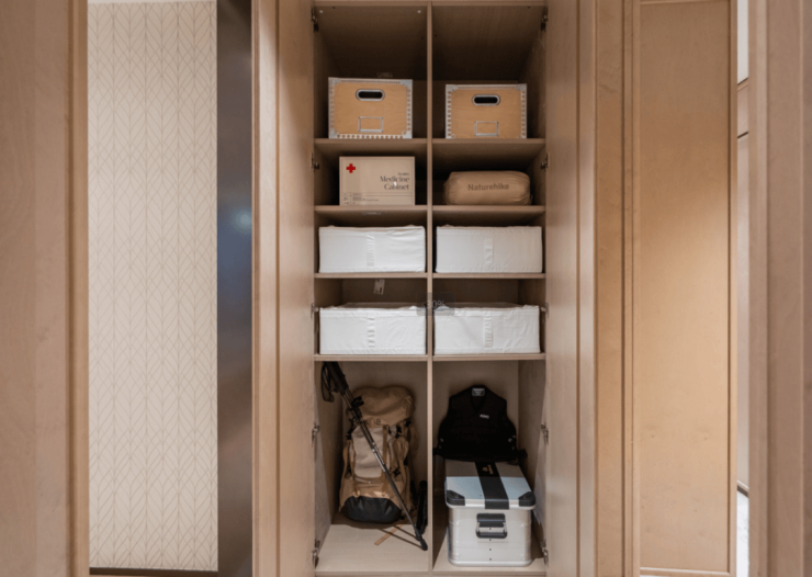 至于不常用的物品,也有专门的归宿——行李箱、登山杖、滑雪板等大件都能稳稳安放,帽子包类、药箱等也都有对应的格子收纳,既节省空间又方便日后取用。