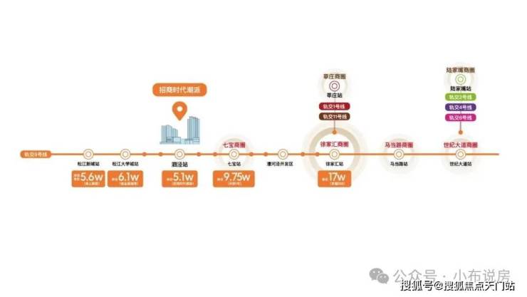 作为9号线泗泾站新一代超级TOD,招商时代潮派与地铁商场直线仅约200米。