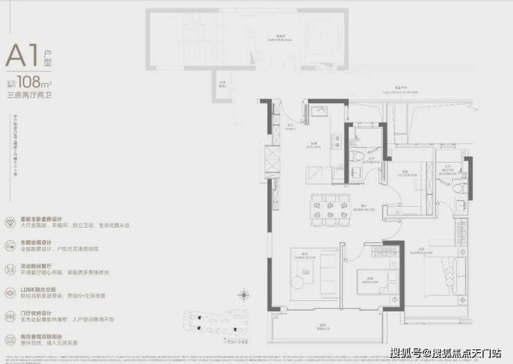 108㎡的入门级三房,起步门槛相比润府提高不少。