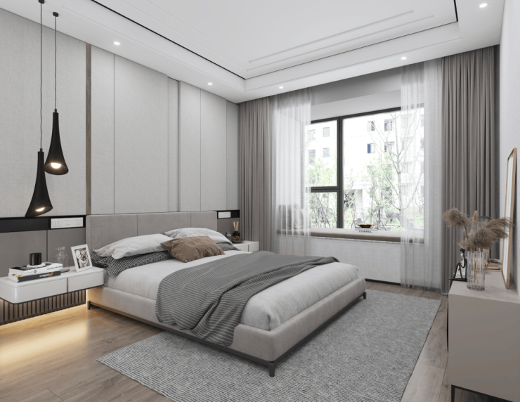 双套房设计,主卧带卫生间+衣帽间 ,次卧带衣帽间+飘窗,让两代家庭都能拥有自己的私密空间。