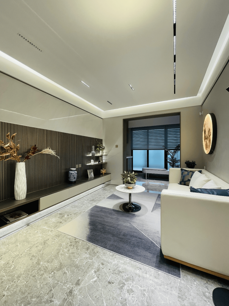项目景观依照 “一环、两轴、四片区” 景观结构,以景观延续建筑简洁现代风格,营造现代雅致的景观效果。依据项目地块属性,对景观空间进行合理布局,从宏观到微观始终关注使用者的需求,营造层次丰富、步移景异的社区居住空间。