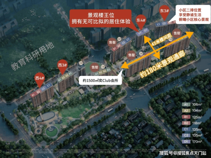 1. 东4#楼王位置!整栋全部是约170m²的大户型,更加纯粹的改善圈层;同时 位于东地块的正中央,既距离南面道路较远更安静,南面更可俯瞰社区中央景观,远眺外部休闲绿地双重景观!集所有视野优势于一身!