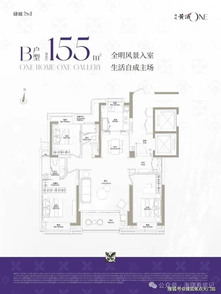 建面约155-193㎡产品,室内约3.15米层高,采用两梯两户的设计,尽显尊贵气度!