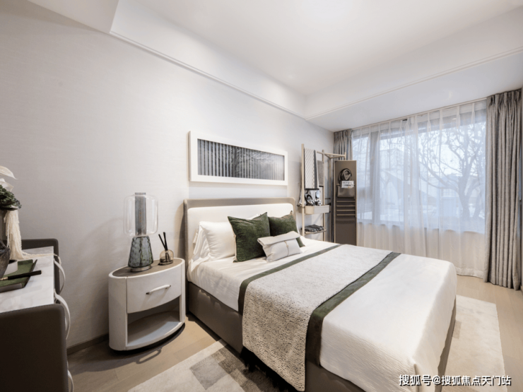 另外,主卧做了套房设计,独立卫生间、走入式衣柜、飘窗都齐了。既然能对户型设计这么重视,说明它对购房者也是十分用心的。