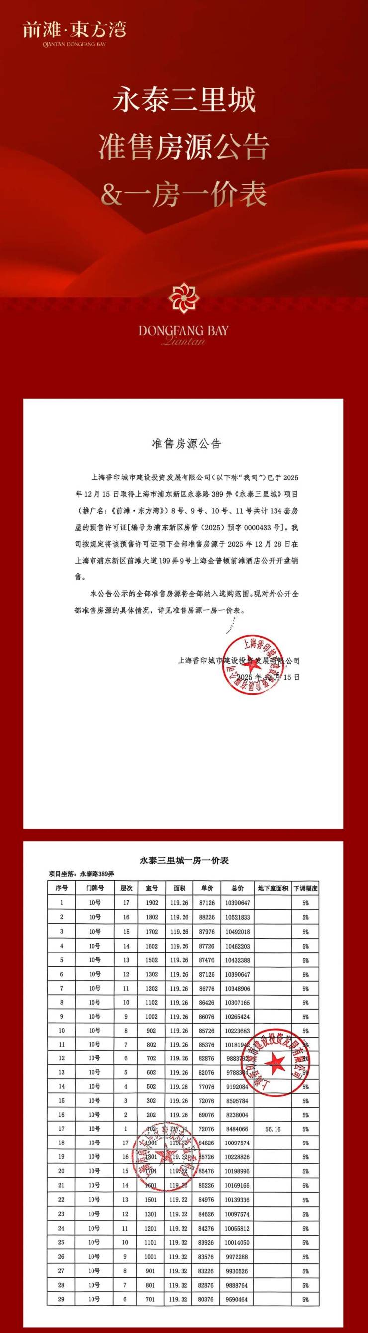 免责声明:1.本项目推广名为【前滩·东方湾】,备案名为【永泰三里城】,开发公司为【上海香印城市建设投资发展有限公司】,预售证:浦东新区房管(2025)预字0000433号。2.本文为要约邀请,不构成要约,本文中的文字、留片、视频仅为对本项目局部现状展示,并非交付标准,双方的权利、义务以及交付标准以双方签订的《商品房预售合同》约定为准。3.本文的效果图(如有)示意仅供参考,关于项目边的道路规划、环境、交通、公共设施文字介绍,皆在提供相关信息,绝不构成任何表述、承诺或保证,最终以政府批准文件及双方合约为准。4.经政府批准的详细规划以销售现场公示为准,敬请查看。5.本资料制作时间为【2025】年【12】月,本公司保留对宣传资料修改的权利,但无更新义务,敬请留意最新资料。