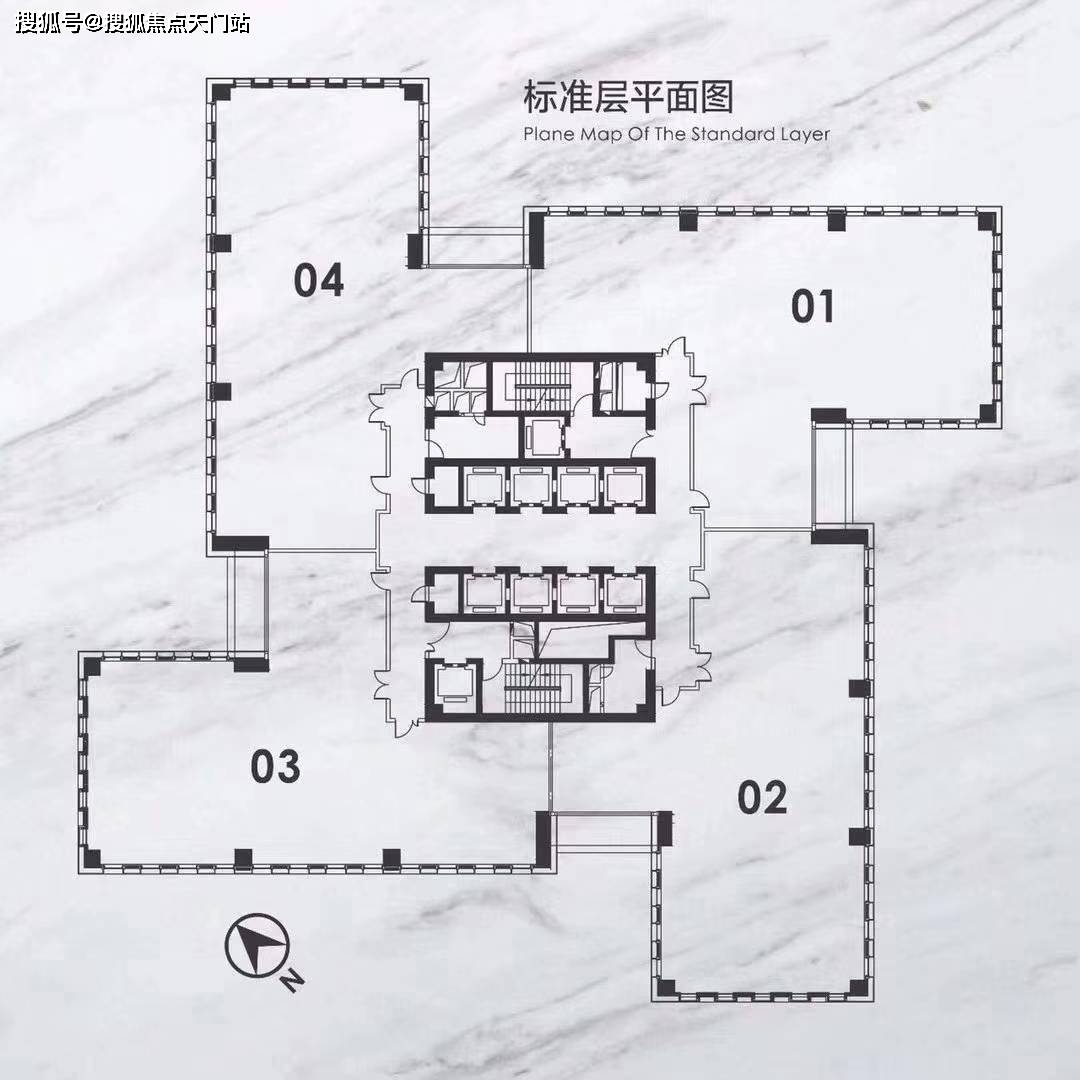 6写字楼创新风车户型,奥体得房率典范(75%)建面约420-1700㎡,灵活多变,270°城市观景,全景视野,套内无柱设计。