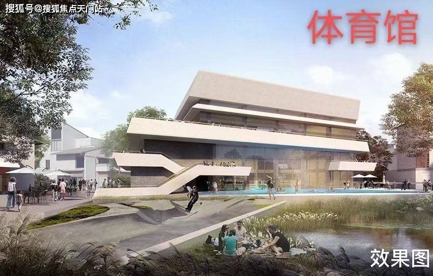 三层现代运动馆,1F游泳馆、2F篮球馆、3F羽毛球馆(在建中)