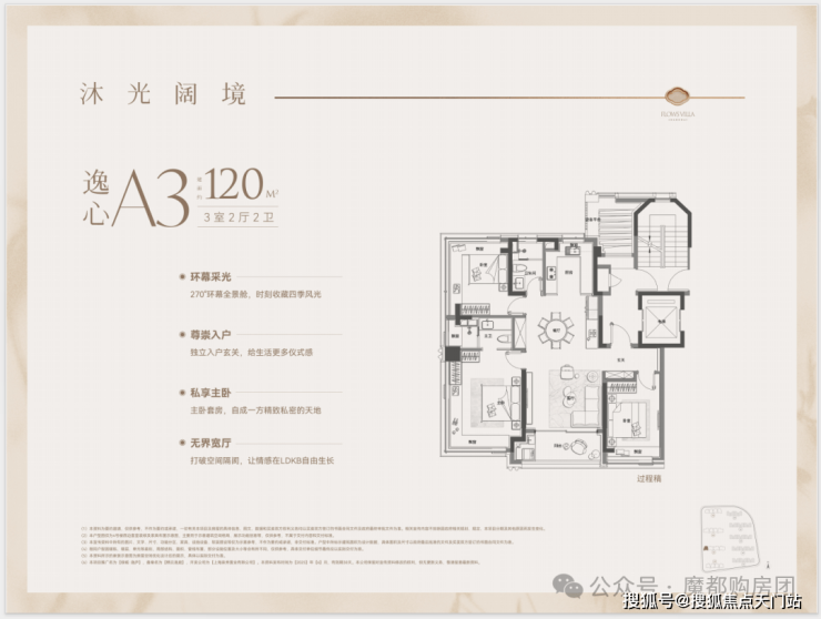 2、建面约120平大3房楼王席位,此面积段最后一批类一梯一户的房源,错过再无;