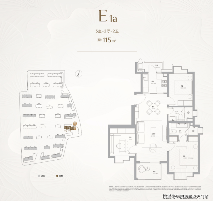 建面约115㎡的3房,三开间朝南的设计,户型的整体尺度感更大,餐厅甚至可以放下一张小圆桌。并且3房的实用性可以满足一个家庭的全生命周期需求。