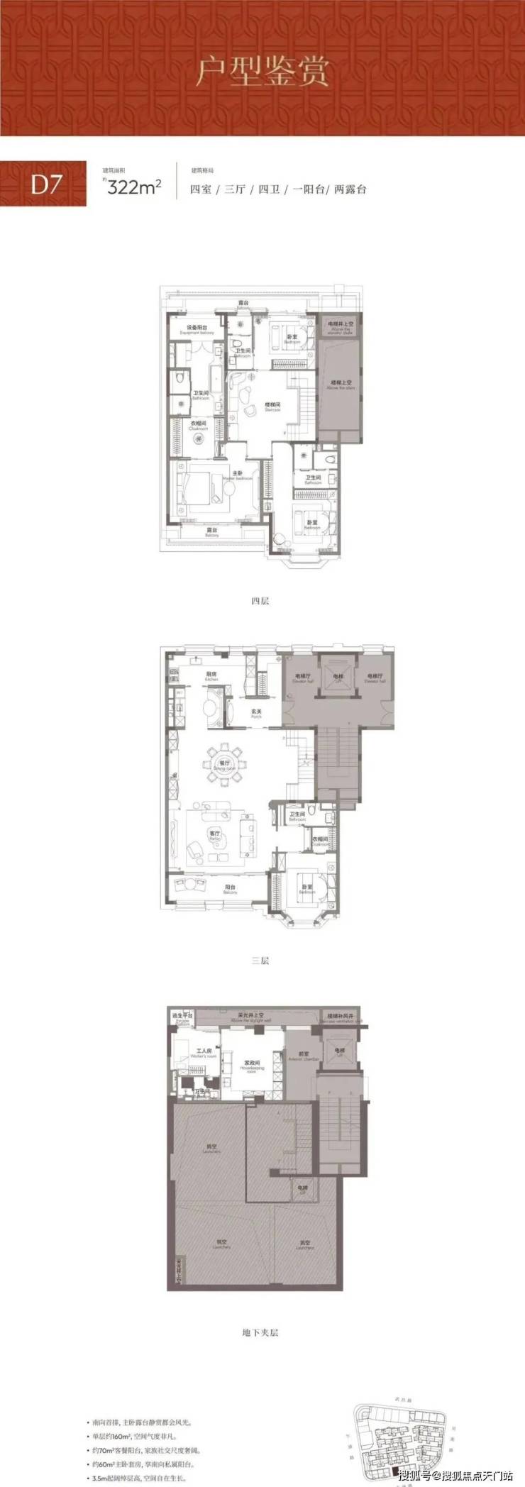 三层约3.5m、四层约3.6m层高,纵向空间感更显阔绰,舒居尺度跃然呈现。