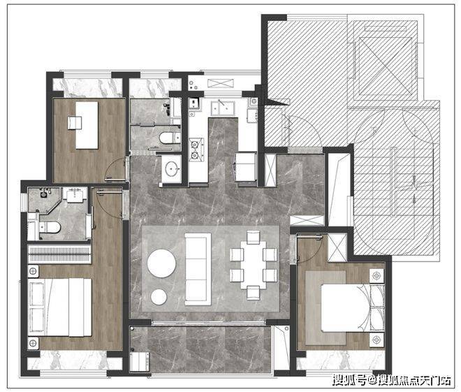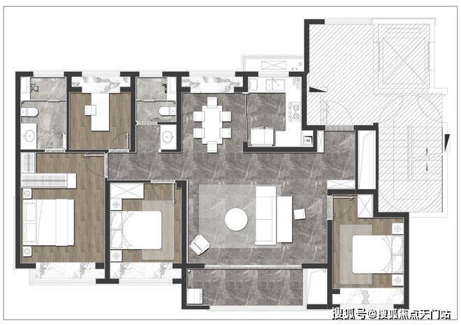 对于二人情侣,是安放衣物与家庭办公的温馨空间,衣帽间、书房、学习,充分满足二人生活的多元生活。面对三口之家,可以从婴儿房进阶为儿童房,伴随年龄结构的变化,而不断调整自己的定位。