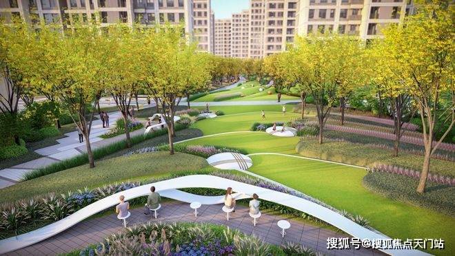 公园+花园的双园社区、品质归家入口、特色阳光草坪、双会客系统、主题儿童乐园、健身系统这六大功能价值为主,并且融合由三条不同主题的林荫步道和三个圆形景观节点组成的 “绿林项链”全区漫步系统,共同构成全区“6+1”森O₂家园系统。