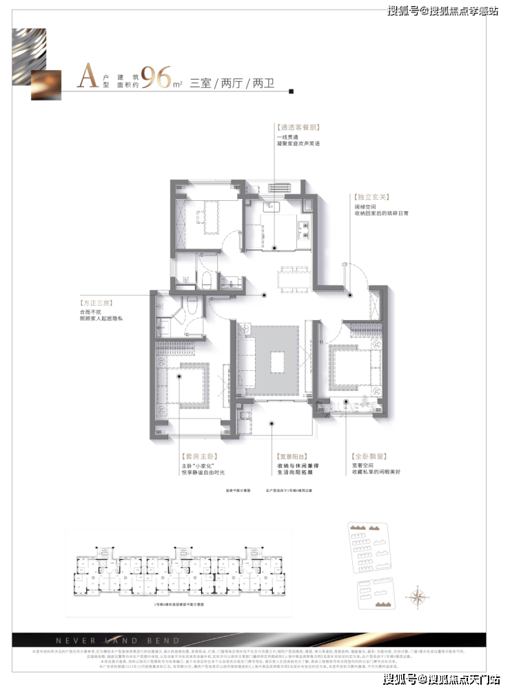 【招商·云澜湾】售楼处营销中心☎☎:400-1182-105👈建面约100㎡的三房两厅两卫户型,可以说是约96㎡3房的升级版,空间更加延展,整体横厅面宽约5.2米(轴中距),形成更大的南向采光面,且搭配南向观景阳台,直接做到了3.5面宽朝南,这在同类产品中是比较少见的。