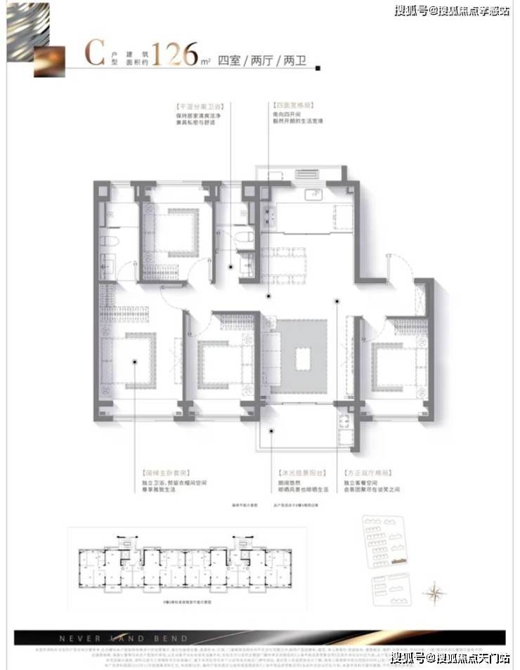 【招商·云澜湾】售楼处营销中心☎☎:400-1182-105👈建面约126㎡四房两厅两卫,更大限度保留了南向房间,四开间朝南,并且是LDKG一体化设计,全飘窗设计,更大大增加了室内尺度感和实用空间。