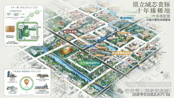 萃屿原墅所在的松江新城高端别墅区北接松江大学城,南临G60科创走廊,东靠政务金融中心,西邻油墩河谷规划,兼具成熟配套与产业动能: