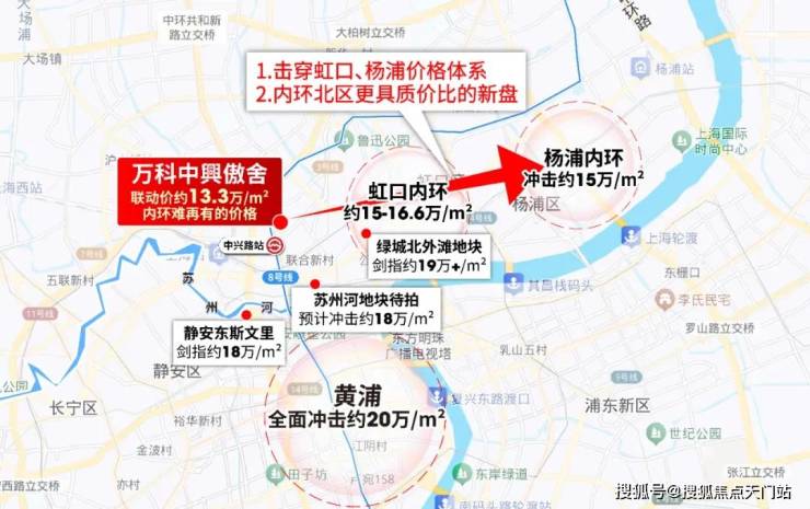 同样内环北区,虹口新盘15-16.6万/㎡,北外滩地块预期19万+/㎡。