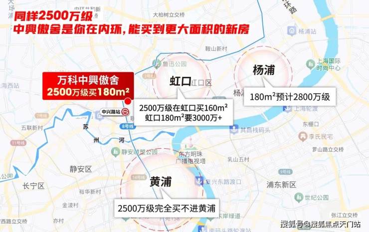于2500万级购房者,同价位下,中興傲舍建筑面积约180㎡大三房,比虹口、杨浦新盘多出约20㎡空间。要知道,虹口同面积段新盘总价已冲到3000万+。
