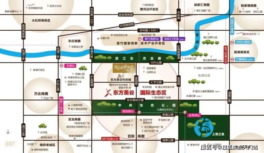 生态休闲方面:毗邻南郊中央生态公园、上海之鱼(又名“金海湖”),是上海奉贤区南桥新城的核心景观湖。