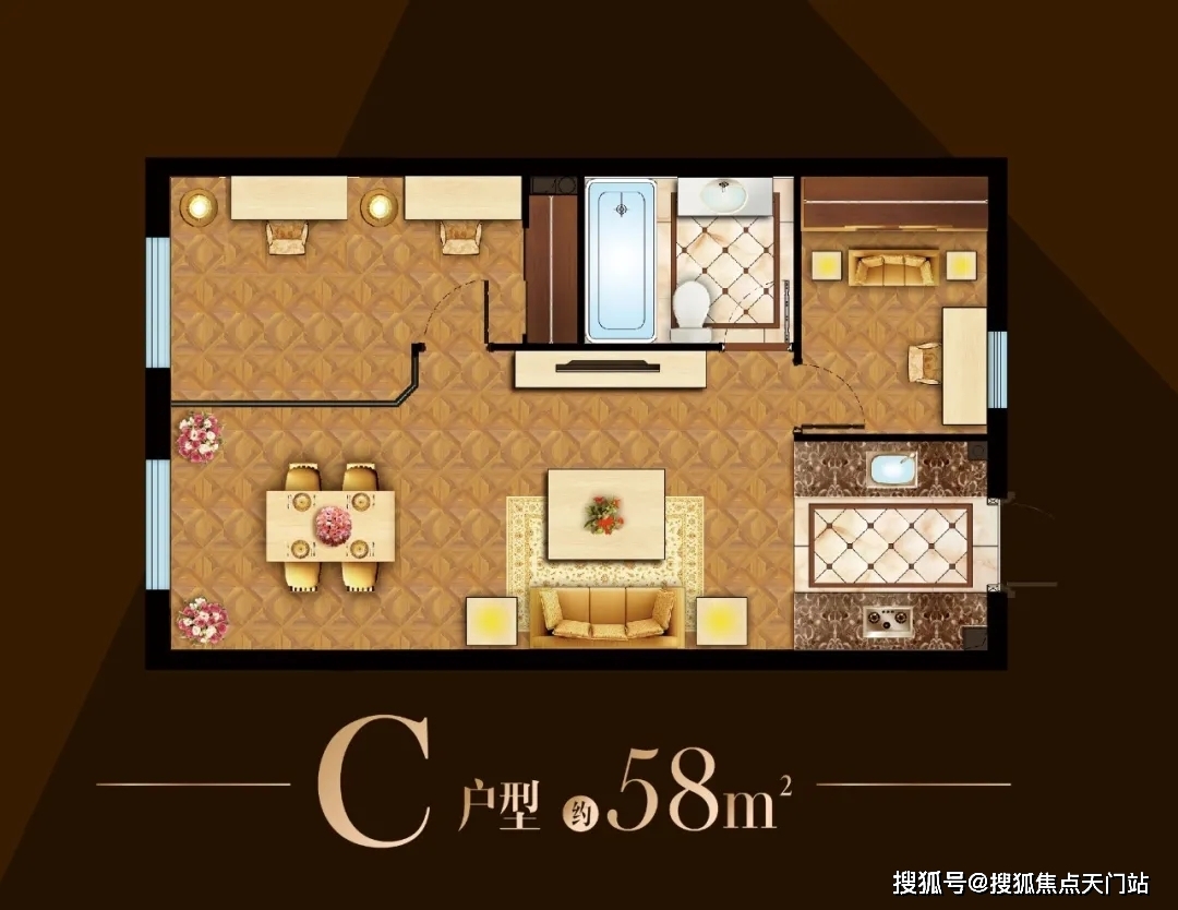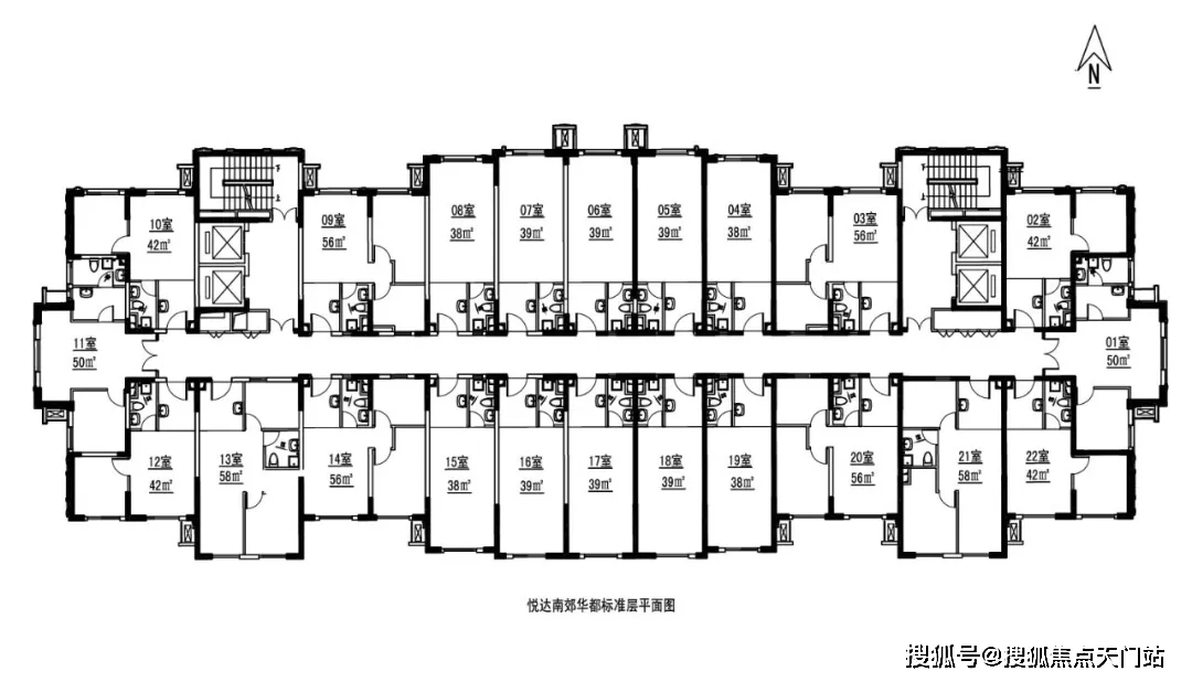 户型有38、39、42、50、56、58平(2房),得房率更是达到了81%。