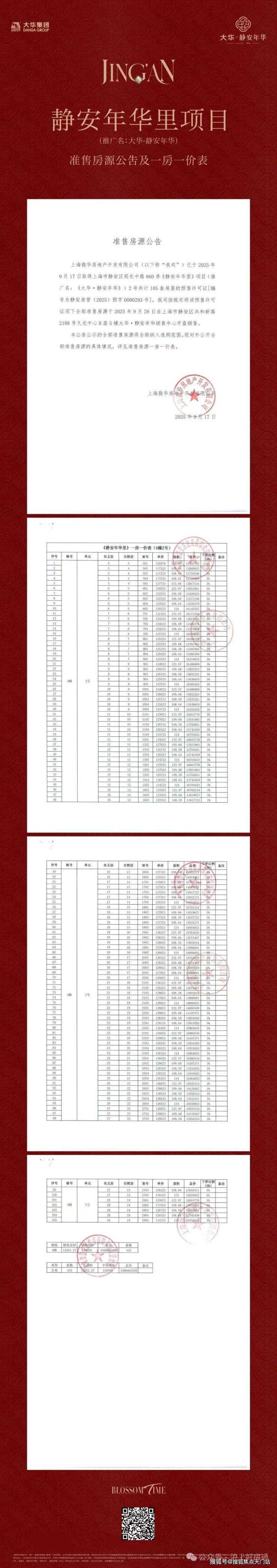 大华静安年华一房一价表: