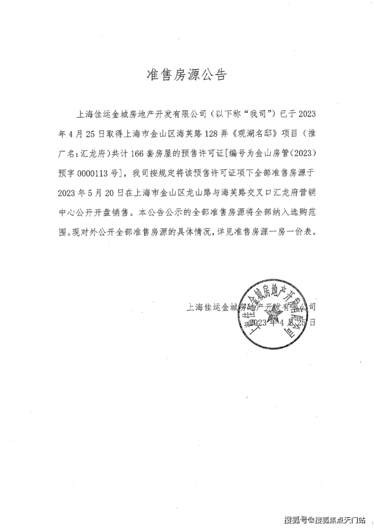 2022年6月7日,上海首批集中供地,佳运置业以总价约6.8亿元竞得金山区金山新城JSC1-0403单元2-20-01地块(即佳运汇龙府),无溢价,房地联动价32500元/㎡。项目四至范围:东至长堂河、南至龙山路、西至海芙路、北至龙翔路。