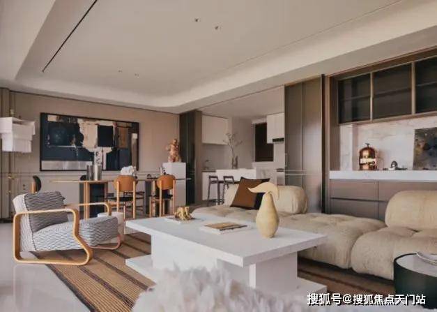 样板间的设计本身就是「静谧与光辉」的具象:约8.8米江景会客厅的窗前,黄浦江景如一幅流动画卷,成为展览最天然的“动态展品”;室内以米白、暖棕为主调,搭配原木纹理的家居艺术品,营造出「静谧」底色;而设计师精心布置的灯具,在夜晚与窗外霓虹、粼粼波光相呼应,形成「光辉」的对话。
