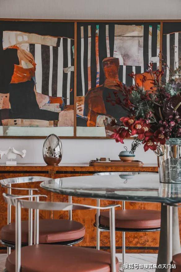 本次展览新增了诸多跨越时间的经典家居艺术品,更是特别选用 Flexform 家具作为客厅区域的核心亮点,多款由设计大师 AntonioCitterio 设计的经典作品,在1996年设计的A.B.C.扶手椅,以现代主义风格为灵感,采用黑色真皮与金属管结构,以低矮座椅展现当代美感。而Carlo Colombo设计的Alison扶手椅,则融合了斯堪的纳维亚传统与当代设计,以实木结构与丰厚座椅柔软贴合,精巧的比例适配多种空间环境,具有超越时间和时尚的魅力。