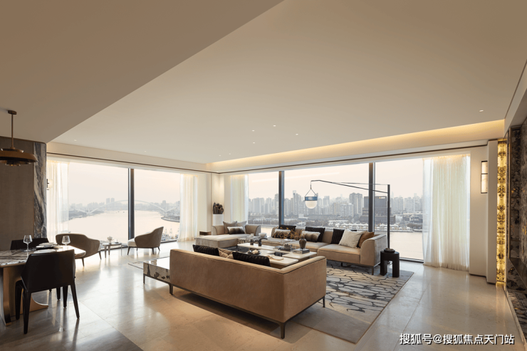 『 保利·世博天悦』建筑设计选择SCDA,主创设计师兼公司创办人 Soo K. Chan 先生,将保利·世博天悦打造成为上海豪宅首个以大面积玻璃及开放式铝板外立面设计,现代简约,历久弥新。香槟金或灰色铝材拼接玻璃,亮银色框架勾勒建筑檐口,深色金属勾边,纵横“十字”型,赋新建筑轻盈与时尚。