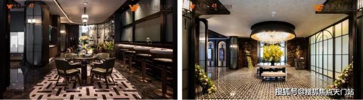 同时,酒店式入户大堂溯源海派经典,融入 古铜色金属格栅、海派拼花(首层和地下大堂)、海派复古压花玻璃等海派表达,让人文感满满。