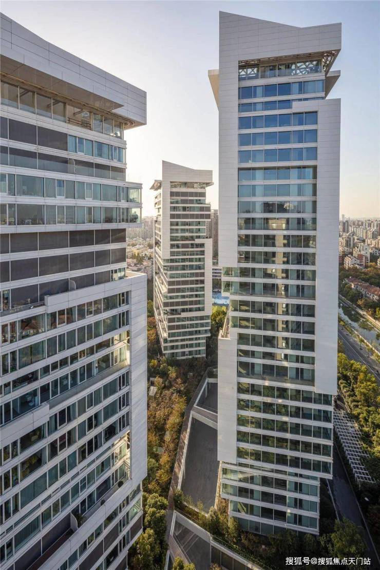 整个社区都是绿色森林,树海环抱,连底层都挑空6~9米,种植绿色,
