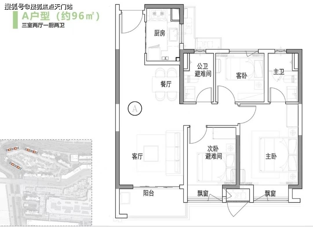 建筑面积为96-131㎡,其中96/106平的是三房两厅两卫,119/131平的是四房两厅两卫。