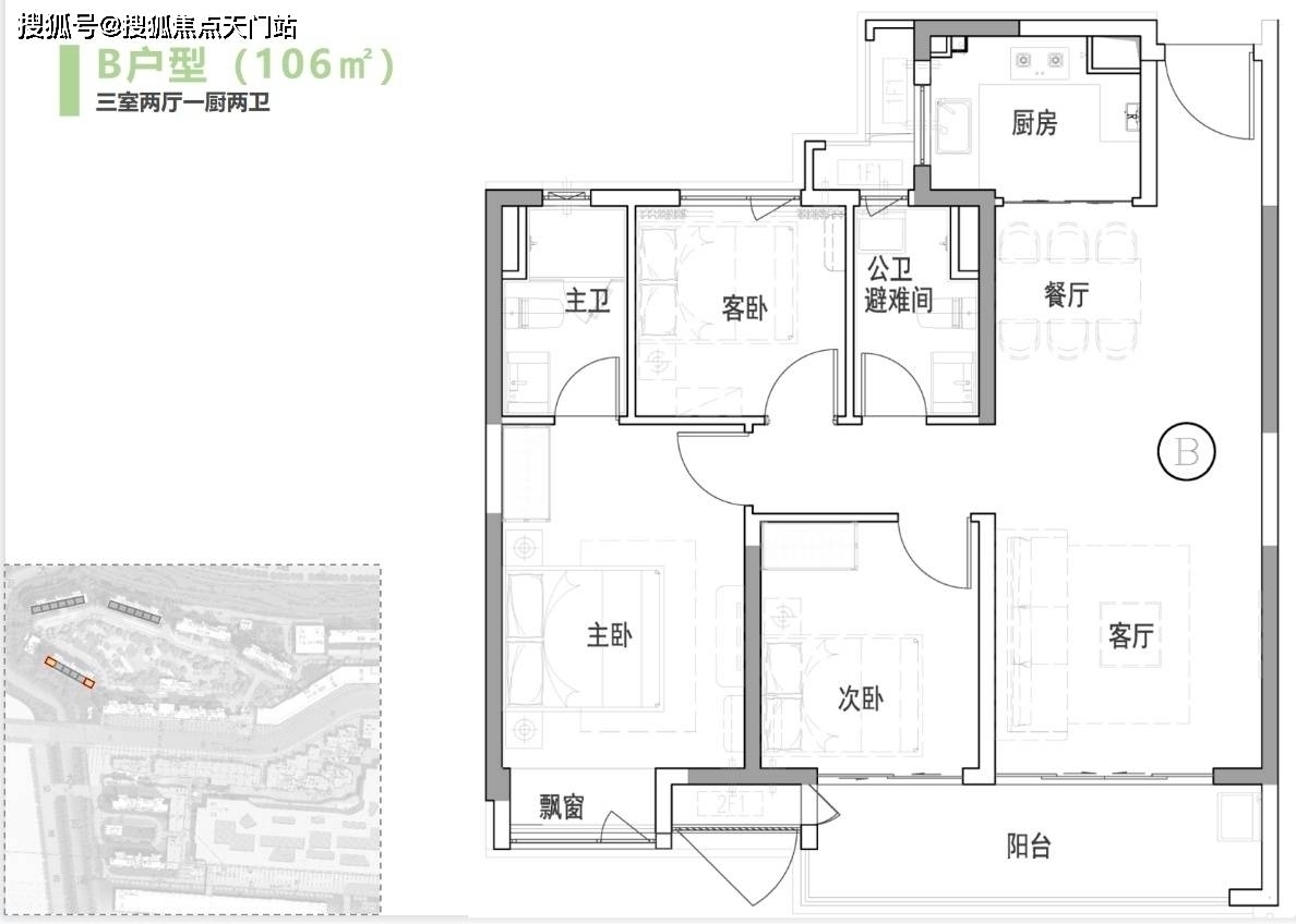 1#(边套):B户型106㎡