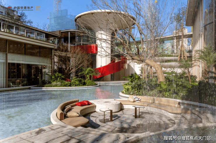 如果 将 这里理解成 “有一个漂亮的水景”,那可能错过了它迷人的部分。它真正在做的事,是把整个社区变成一个立体悬浮的岛屿——你可以在水边发呆,也可以转身走进会所游泳;可以在瀑布声里阅读,也可以拾阶而上与光影相遇。庭院、会所、书吧、旋梯,彼此看见,相互连通,像一座精心设计的立体迷宫,而你每一次穿行其中,都会发现新的惊喜。