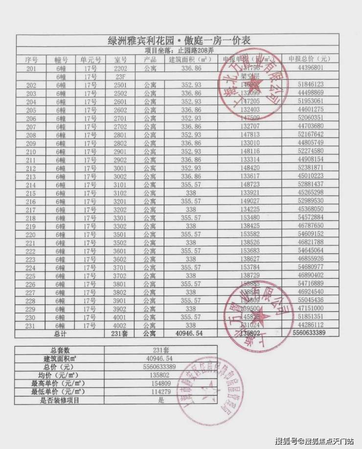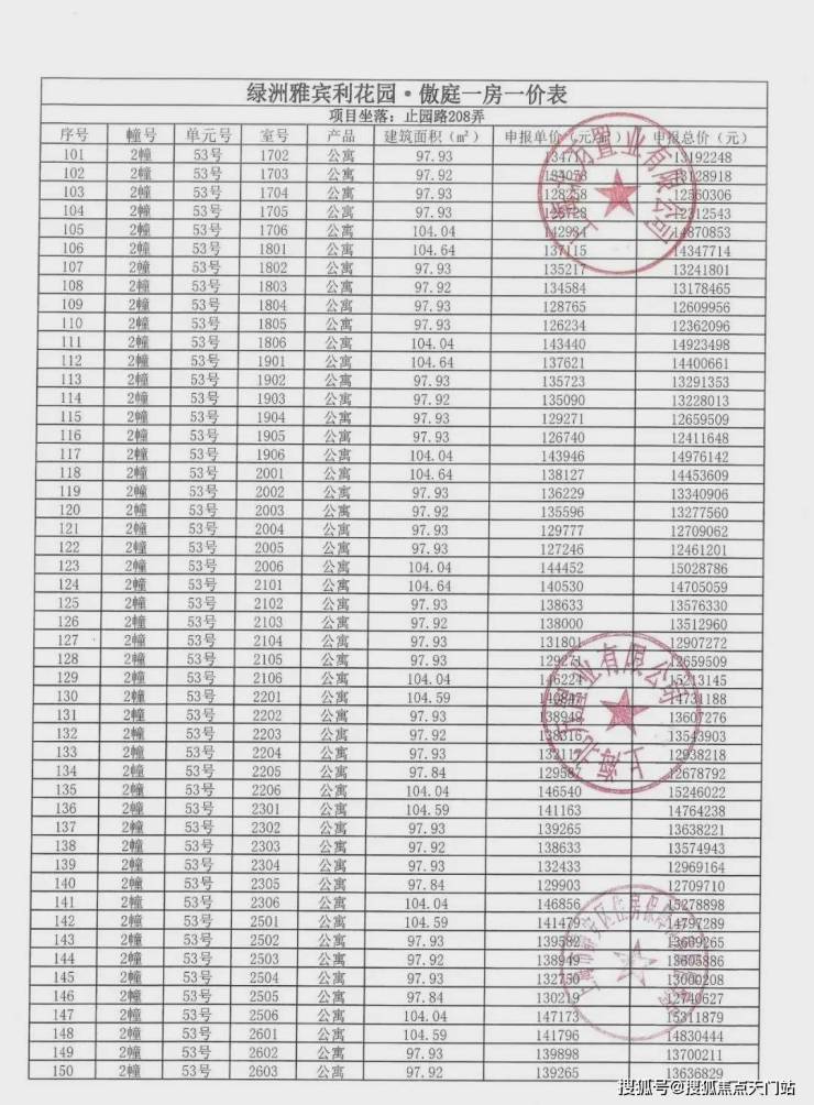 一房一价表发布