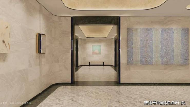 比如,艺术感与质感并存的车库,以及全石材地面铺装的车库大堂。