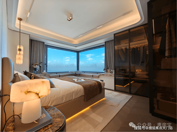 建面约 145㎡户型以 270°转角飘寄搭配超高窗墙比解锁超广角视野,将无限景致“拉”至眼前。城市的璀璨天际、静逸的河景、灵动的山水庭园,点亮窗前,让生活的每一刻都浸润在自然与开阔之中。