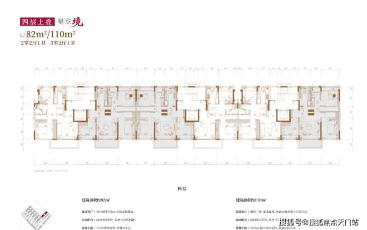 建面约82㎡2房2厅2卫/110㎡3房2厅2卫(四层上叠):