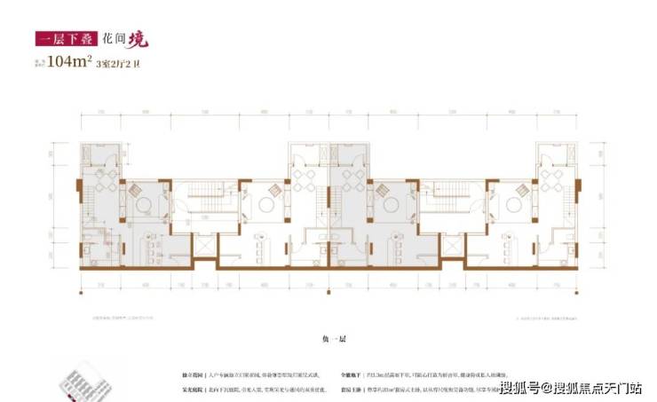 建面约104㎡3房2厅2卫(一层下叠):