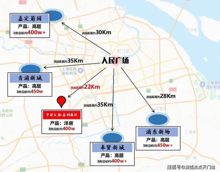 一,项目直线距离人民广场仅约24公里,当下上海同样距离人民广场24公里的板块,如南翔、徐泾、顾村,价格几乎都在500万级以上,中建大椿·嘉利椿廷仅400万级,是难得价格洼地;