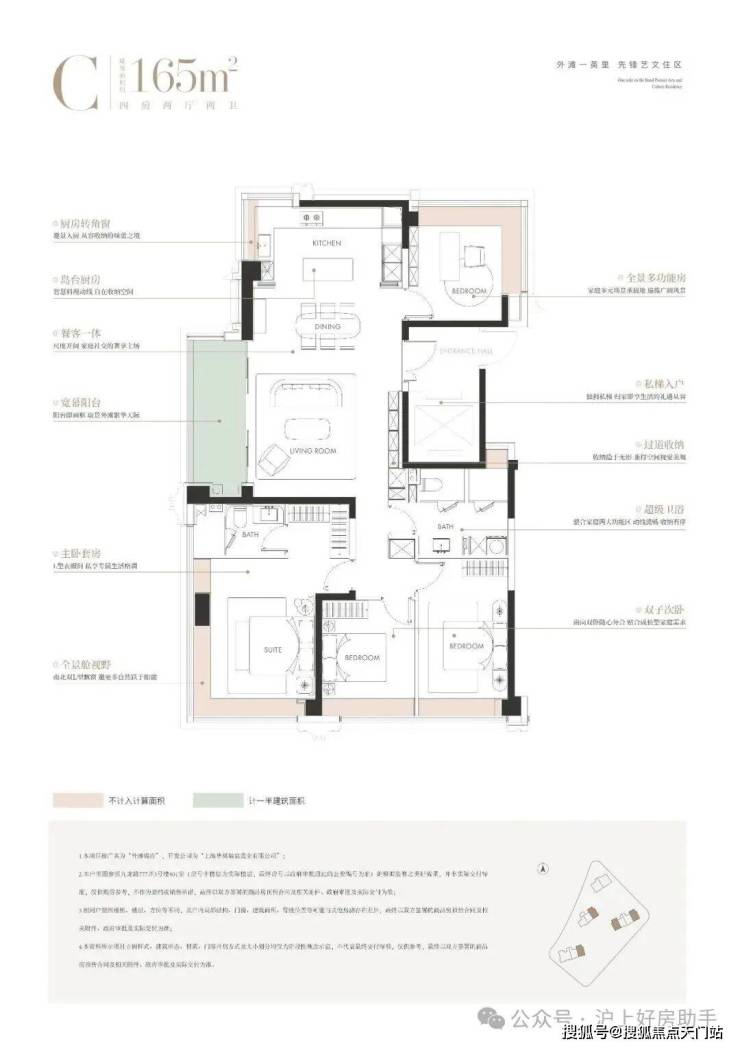 如果说 124户型是上车外滩的难得机会,那么建面约165㎡户型,则完全是另一种进阶的气场——它是一部真正意义上的“内环MVP”,在功能、视野、尺度、颜值力求每一个维度的全能,让豪宅不止于豪!